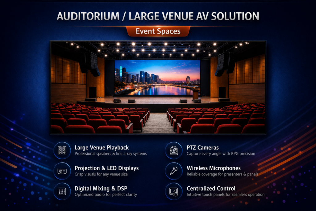Modern AV integration solutions enhance communication, collaboration, and productivity across corporate boardrooms, government facilities, and educational institutions. From small meeting rooms to large auditoriums, we provide scalable, cost-effective systems tailored to your needs.