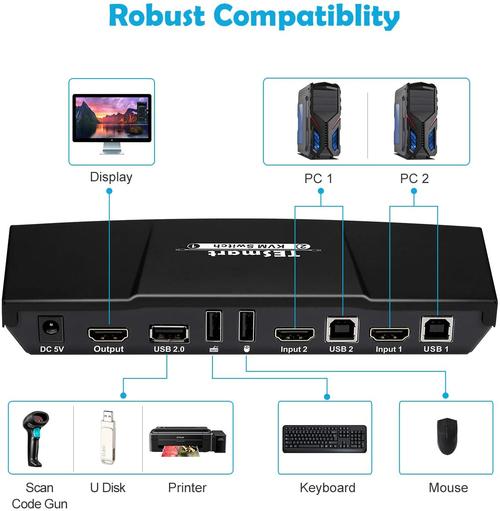 Home » Shop » Computer Peripherals » TESmart HKS0201A20 HDMI KVM Switch 2×1 4K@30Hz with 2 Pcs 5ft KVM Cables Supports USB 2.0 Device Control up to 4 Computers/Servers/DVR